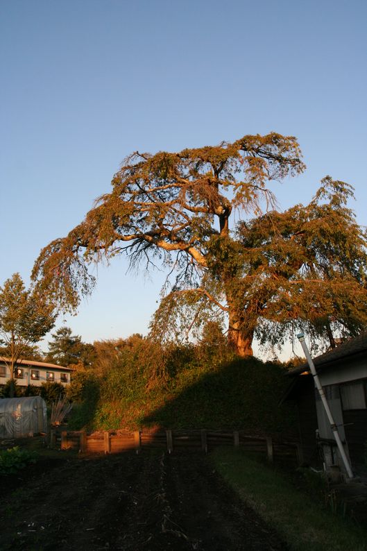 これは、見学用に置いてある樅の木で、大きさは長さ約17m、太さ約1m。重さは10トンあるらしい。