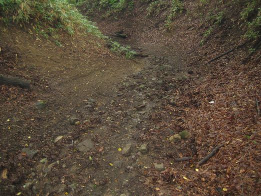 峠を過ぎれば下り坂 「座頭ころがし」 赤土で小石がゴロゴロ。