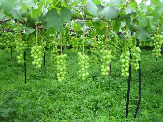 みずみずしいブドウ畑の傍を通る。辺りは一面ブドウ畑。