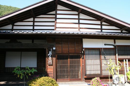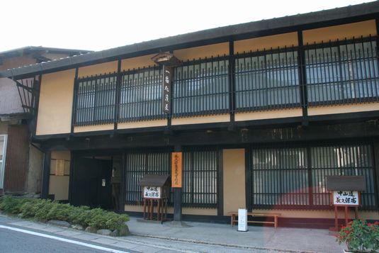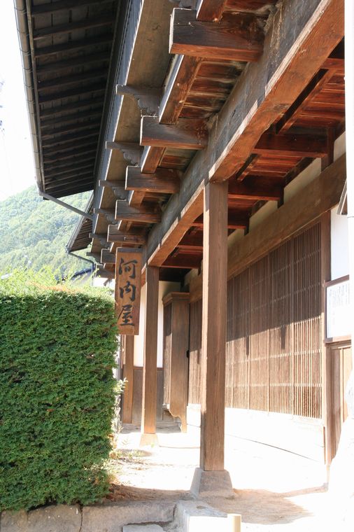 河内屋。 出桁造り出格子の二階建てで、間口は八間半(約15m) 奥行十一間半(約20m)の堅牢な造りで、上客向けの旅籠であったらしい。現在「歴史の道資料館」として公開されている。