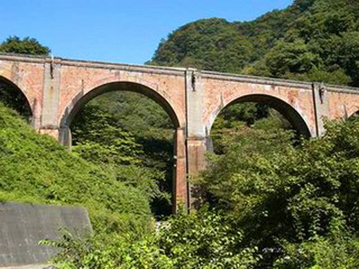 現在、新幹線が走り、廃線になっている「めがね橋」も見に行く。明治25年に完成し、芸術と技術が融合した美しいレンガ造りのアーチ式で川底から31mの高さがある。このような橋梁は、第2橋梁から第6まての5基が残っており、国の重要文化財となって観光スポットとして最近人気が上がっている。