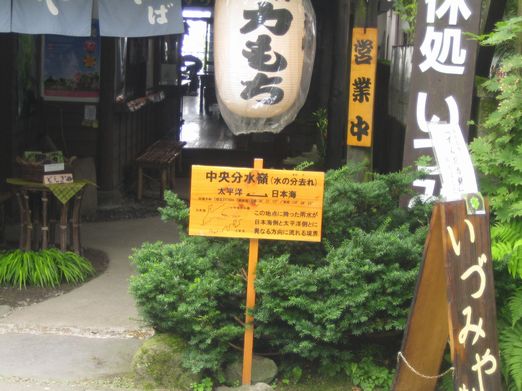 峠からは急な下り坂になる。くねくね曲がって下っている霧ケ峰に通じるビーナスラインを1回はトンネルをくぐり、3回は横断して東餅屋跡(今はドライブインになっている)に着く。早速餅をいただく。