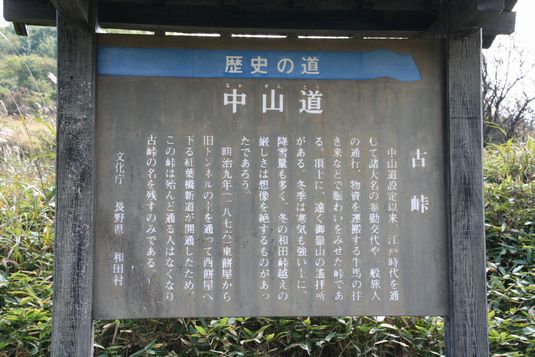 ここ下諏訪宿での見学を終えて、22km先の和田宿へ向かう。西餅屋跡までは古道は定かでなかったので、ここより本格的な古道で中山道有数の難所へ向かう。