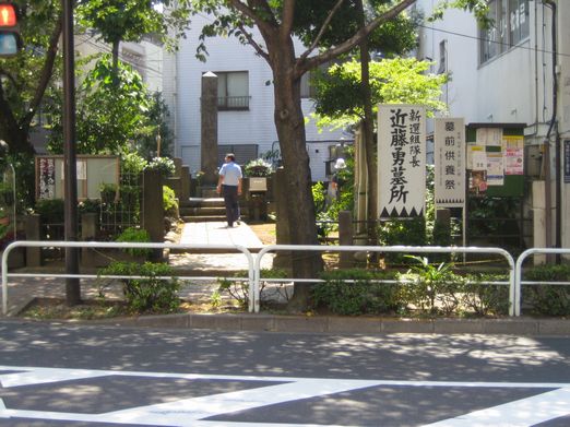 平尾の一里塚跡の近くに幕末に活躍し有名な新撰組の隊長「近藤 勇」の墓所があり、お花が供えてあった。