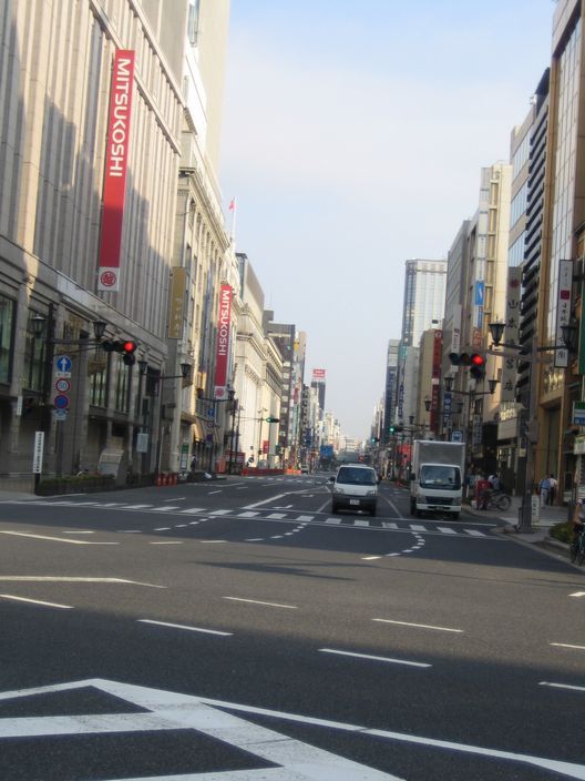 江戸時代は この辺りには伊勢・近江・京都に本店を置く上方商人の「江戸店(えどだな)」が並んでいたらしい。その代表的な呉服屋の大店が「三井越後屋」、現在の「三越」である。