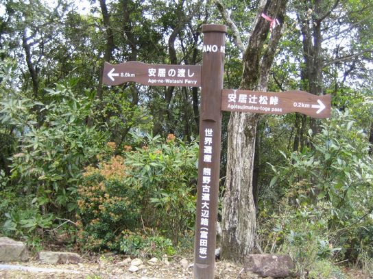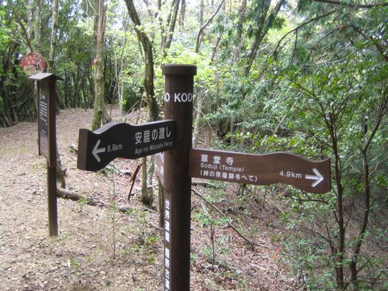 ここから林道と交差している所まではアップダウンも少なくて、すぐだったが「安居(あご)の渡し」まで8.6kmとある。 そして、ここから祝滝との分岐の所までは厳しい下りだった。(標高差約300mを2.3kmで下る)