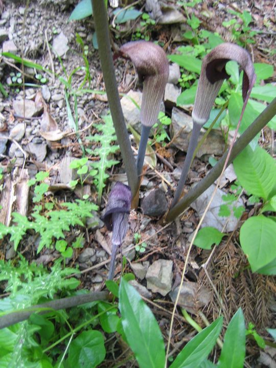 同じ紀伊半島だが、高野山の周辺には見られない「うらしまそう」が目に入った。高野町石道で見かけるのは「まむしそう」。同じサトイモ科 テンナンショウ属です。