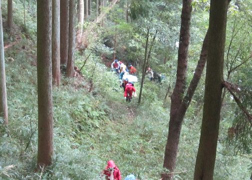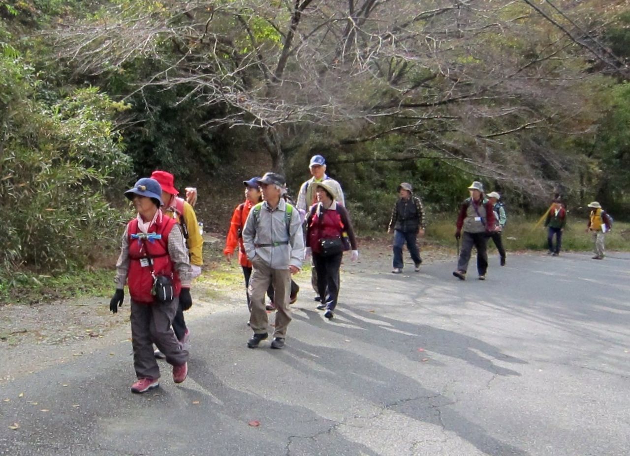 見学後、峠まで近道を通るため、細い山道を登って、珍布峠に向かう。