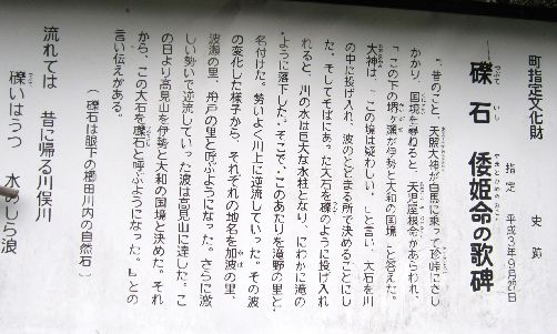 礫石の説明 言い伝えだが、加波・波瀬・舟戸の集落等は現存し、現に三重県と奈良県の県境は高見山になっている。