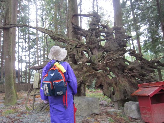 今回は 前回の終了地点・水屋神社よりスタートする。トイレを借用した後、お参りし、境内の大クス等の見学。