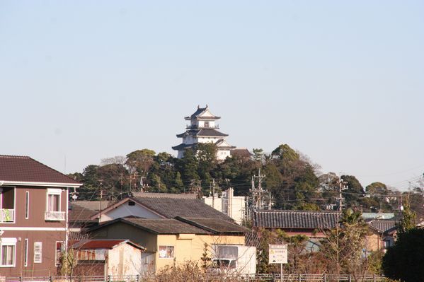 亀山城が見える。黒板張りの多聞櫓と石垣が残っているにすぎない。