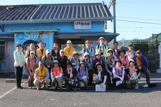 前日の台風一過 天気は快晴に恵まれ 橋本市の東端の駅「隅田駅」に7時10分に25人集合。セレモニーを行い、集合写真を撮り、出発する。本日の目的地 大和上市駅迄の約25kmを歩く。